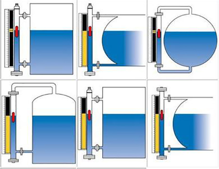 ⑴(普通型),它是由本體、浮子、面板框等部件組成。液位計與容器上下法蘭連接,連接時中間加閥門,安裝在一側。它適用于在不需要保溫或冷卻,且介質對奧氏體不銹鋼不腐蝕的場合。