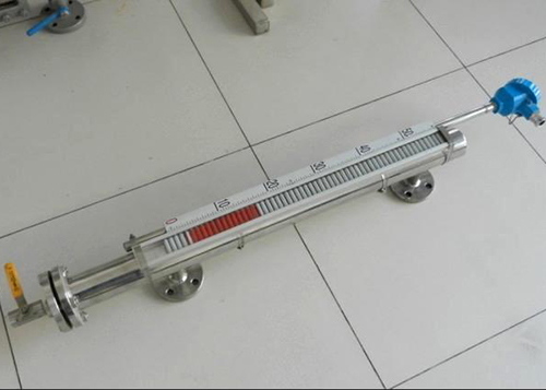 在管體的另一側可按用戶需要加裝電遠傳變送器,將液位高度轉換成標準電流信號輸出,以供液位信號輸出,以供液位信號遠傳至二次儀表進行指示控制與檢測。