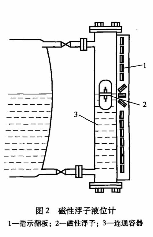 硝酸銨溶液生產企業里多數使用磁性浮子防爆型磁翻板液位計,防爆型磁翻板液位計根據浮力原理和磁性耦合作用研制而成,如圖2所示。