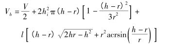 根據質量計算公式m=QV可知,需能找到不同液位H下對應的體積V,然后乘以溫度修正過的液氨密度Q液氨,即得出準確的氨罐噸位。通過查閱相關資料,臥式氨罐體積V與高度H可用下式進行計算:
