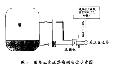 對貯罐油位改用差壓法檢測后,測量值滯后性小(考慮到氣閥開/cjj時的差壓波動影響,可適當增加阻尼,damp值取2~4s)。智能差壓變送器準確度高(0.5級,氯酸液位計1.5級),穩定性好,調整靈活(用實際工作油進行標定,不需要專門測定油的密度p),安裝也比較方便,可保留氯酸液位計。計算機編程部分工作量也不大,實施該項目費用在7 000元以內。此方法可用于其他水箱和油箱等檢測、控制方式的改進。
