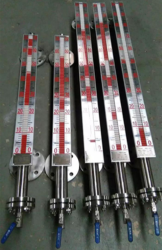 根據浮力原理,浮子在測量管內隨液位的升降而上、下移動,浮子內的永久磁鋼通過耦合作用,驅動紅、白色翻柱翻轉180°,液位上升時翻柱由白色轉為紅色,下降時由紅色轉為白色,從而實現液位指示。