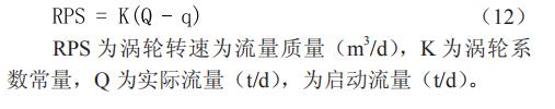 ①吸汽量。計算射孔層位吸汽量,可以通過六參數儲罐液位計的渦輪流量計實現。忽略低流速時渦輪的非線性響應及密度對渦輪轉速的影響,則渦輪轉速 RPS 與流速成正比 :