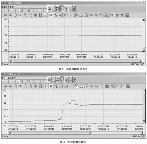 然后利用多孔法蘭(結合LNG項目的實際情況來選擇法蘭的孔數以及尺寸大?。瑢⑵浣拥剑蹋危枪揄數臏囟茸兯推鹘泳€箱內部,再使用多芯電纜把4~20mA信號發送到控制系統?,F場安裝RTD熱電阻建議選用雙支,方便以后檢修更換。圖2為LNG儲罐溫度顯示。