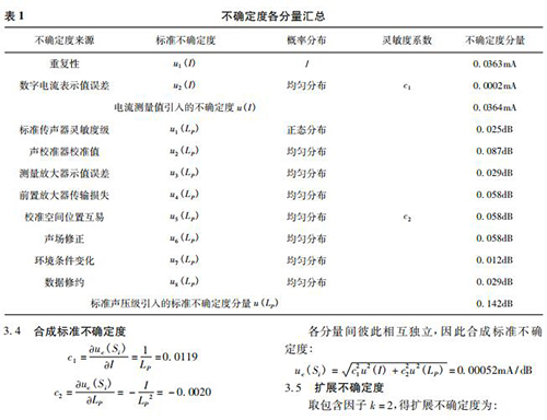 對頻率 1000Hz、聲壓級 84. 0dB 時的軟化水水箱液位計電流輸出聲壓靈敏度的測量不確定度進行評定。