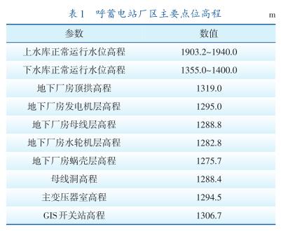 呼蓄電站廠區(qū)主要點(diǎn)位高程見(jiàn)表1。
