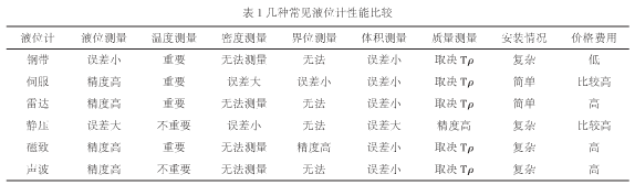 1、常見液位計的性能特點
