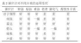 2、常見液位計性能比較和適用介質