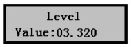 1)儀表上電,儀表進入測量,液晶顯示液位數值,如右圖,而實測液位為3.320m,下面介紹標定方法。