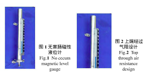 ③ 測(cè)量結(jié)果誤差較大。現(xiàn)在正逐漸選用基于磁耦合原理設(shè)計(jì)的磁翻板液位計(jì)代替玻璃板液位計(jì),此液位計(jì)是基于阿基米德定理,磁性浮子在液體中產(chǎn)生浮力,根據(jù)磁鐵同性相斥,異性相吸的性質(zhì)制成。但傳統(tǒng)的磁翻板液位計(jì)也存在一些弊端,如其下端浮子腔為盲腸結(jié)構(gòu),設(shè)備盲腸在石油石化系統(tǒng)是1個(gè)大的安全隱患,介質(zhì)腐蝕物的積聚對(duì)該處焊縫產(chǎn)生應(yīng)力腐蝕開(kāi)裂,介質(zhì)中的水分在該處沉降,冬季有產(chǎn)生凍凝的風(fēng)險(xiǎn),這些隱患時(shí)刻威脅著企業(yè)的安全。