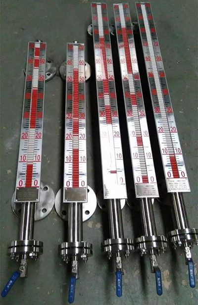 3、磁翻板液位計(jì)安裝完畢后,需要用磁鋼進(jìn)行校正對(duì)翻柱導(dǎo)引一次使零位以下顯示紅色,零位以上顯示白色。